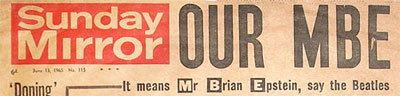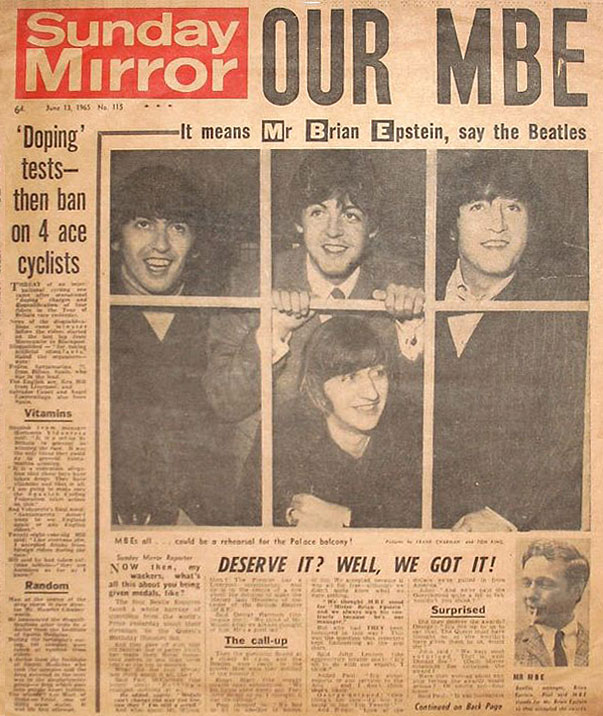In 1965, both Paul McCartney and George Harrison, on being awarded their M.B.E.s by the Queen, said "M.B.E. stands for Mr. Brian Epstein."